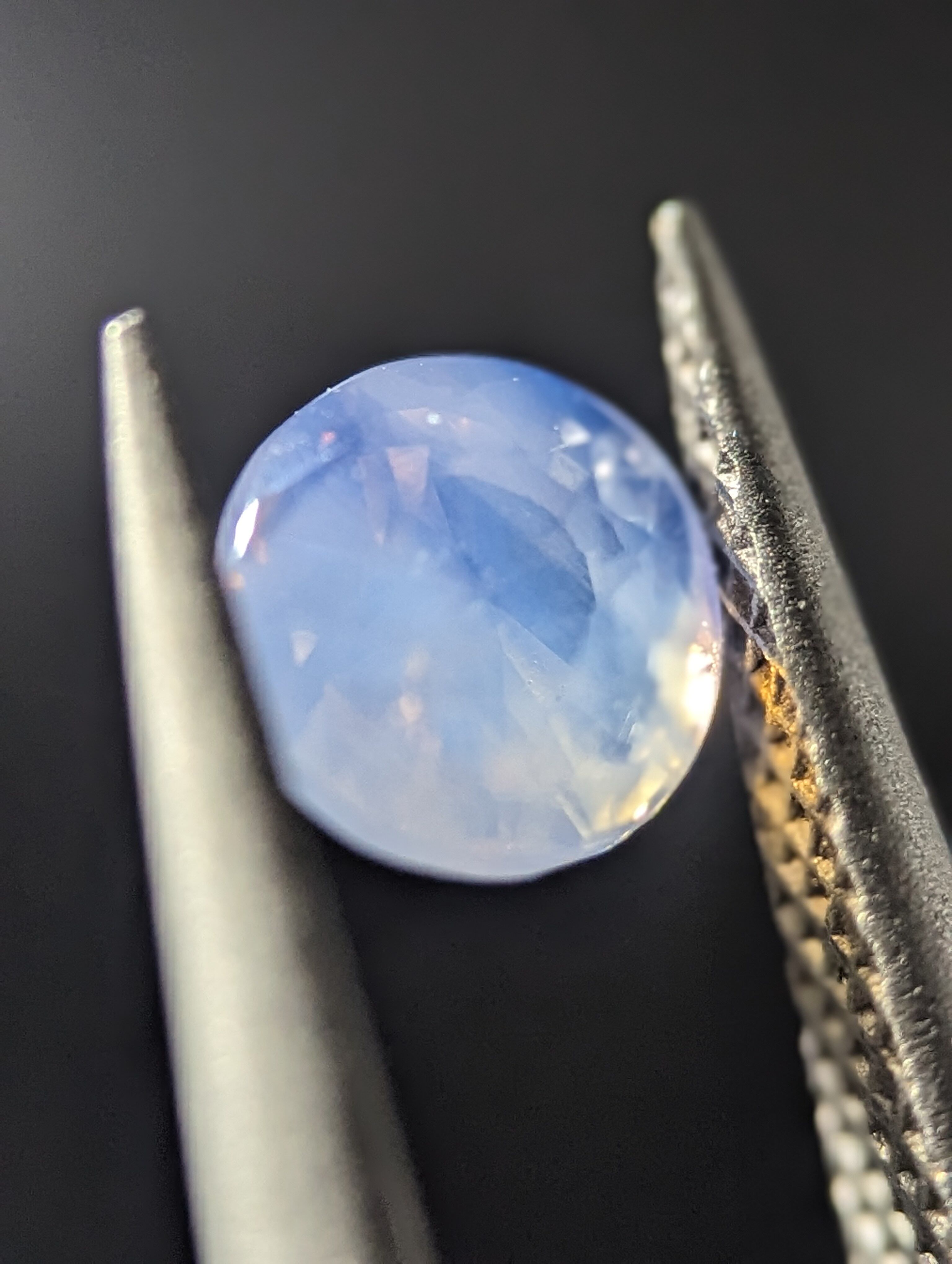 まるで青い月のような白の地に青が入ったとても希少なカラーのミルキーサファイアです✨(*´ω`*)