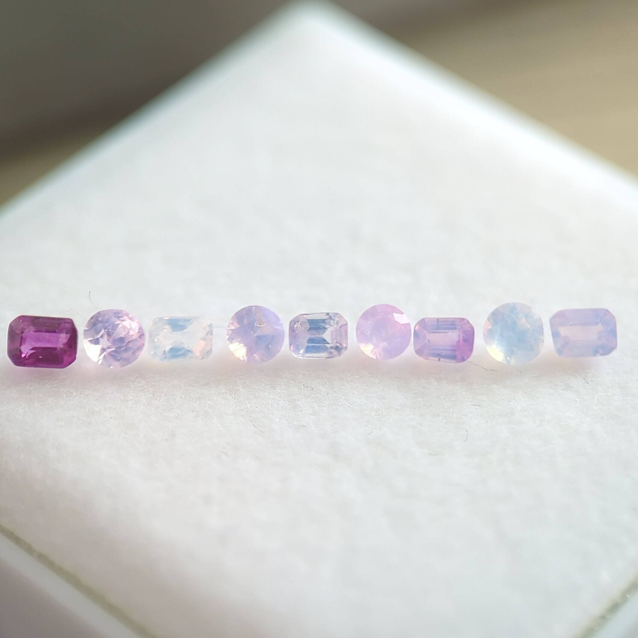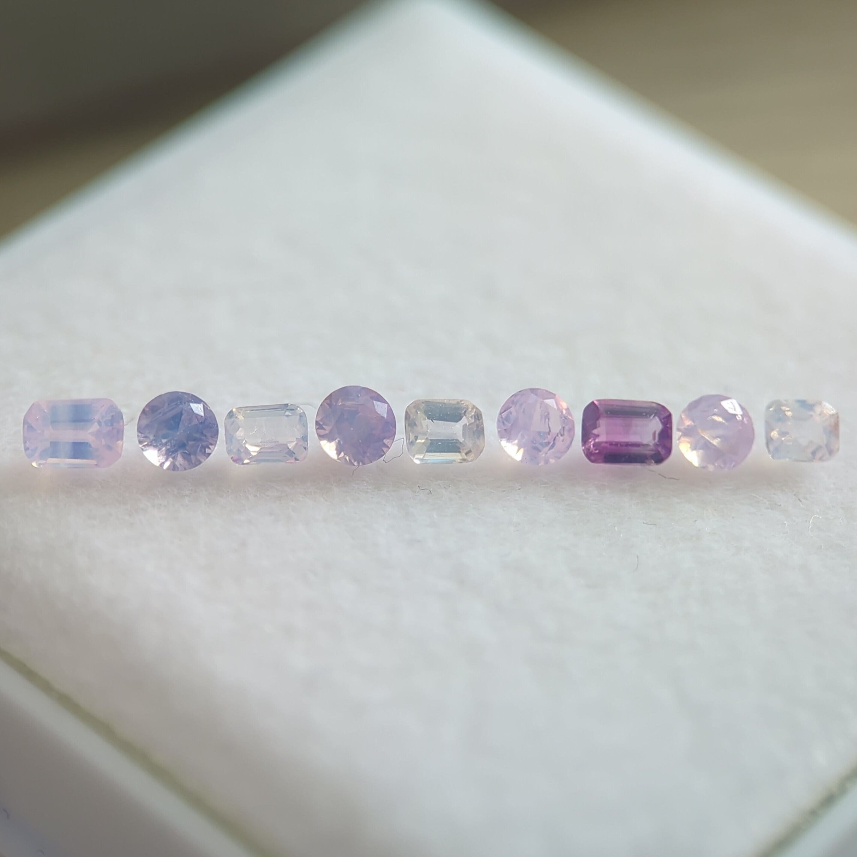 a バイカラーグラデーションのエメ角や淡めの水色、ホワイト、ライトラベンダーやラベンダー、淡めのピンクのセット