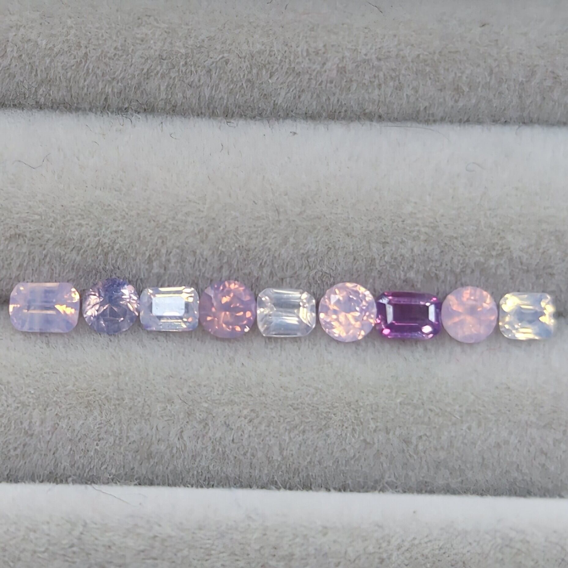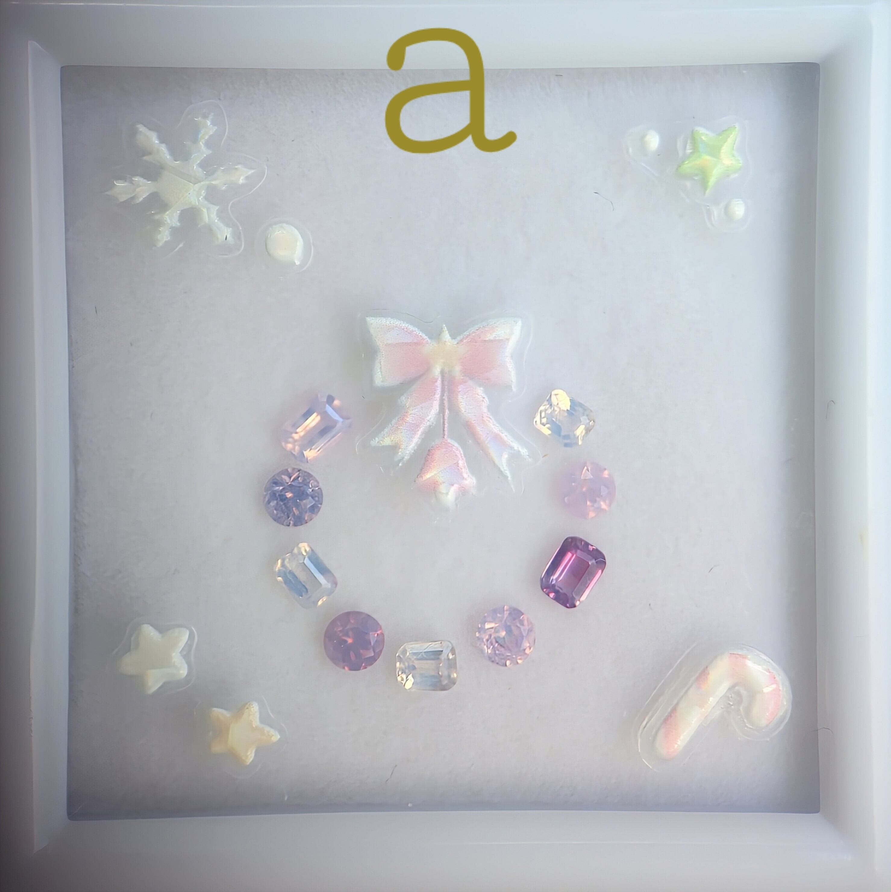 エメ角5石とメレ4石(2.5〜2.7㎜)レアカラーを含めた合計9pcをクリスマスリースのようにセットしました୨୧